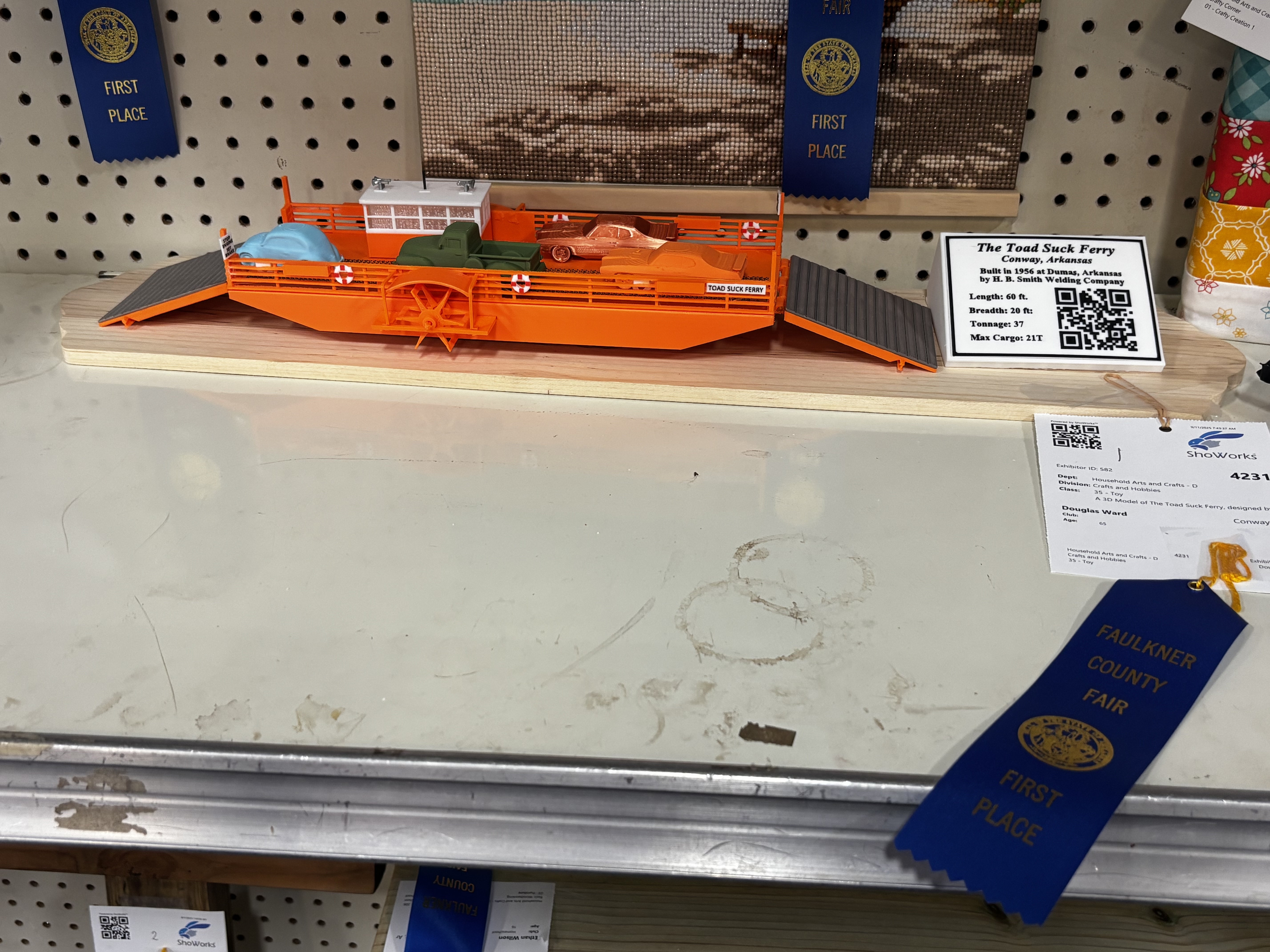 UPDATE: The Toad Suck Ferry 3D Model was awarded a blue ribbon at the 2025 Faulkner County Fair!